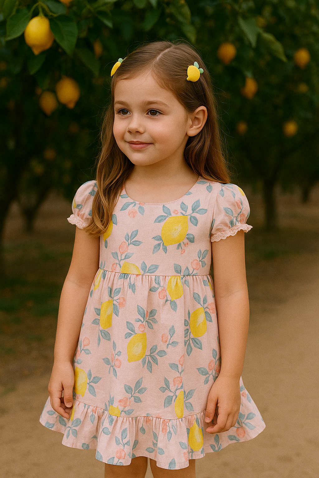 Lemon print puffed sleeve dress