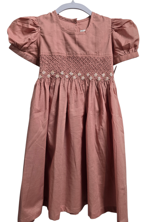 Light peach hand embroidered smocked dress